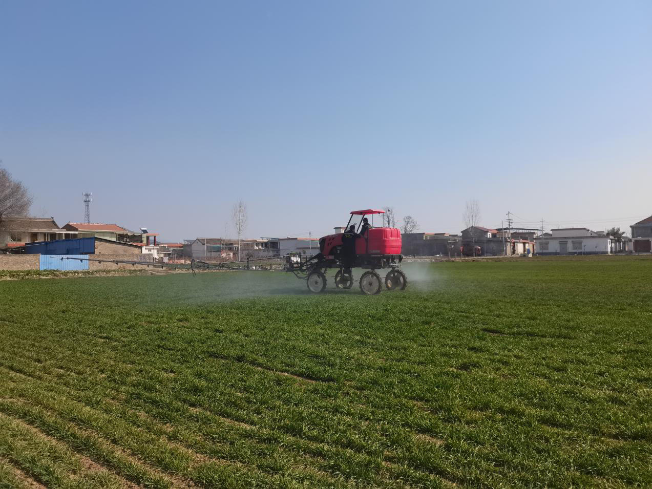 2月25日上午,沁阳市葛村供销社顺鑫农业有限公司的工作人员熟练地驾驶自走式高脚打药车,来到紫陵镇王村的麦田开展除草打药服务。随着机器的启动,除草药剂被均匀喷洒在麦田上,杂草被精准“打击”,小麦则在“呵护”下更加挺拔。通过喷洒作业,能够集中解决麦田的除草需求,确保小麦生长环境的优化,助力小麦的健康成长和产量提升。