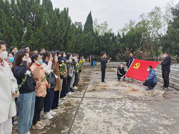 面对鲜红的党旗大家集体宣誓,作出郑重的承诺:“对党忠诚,积极工作,为共产主义奋斗终身,随时准备为党和人民牺牲一切,永不叛党!”缅怀先烈,寄托哀思。向狼牙山五壮士之一的宋学义烈士致敬、献花。