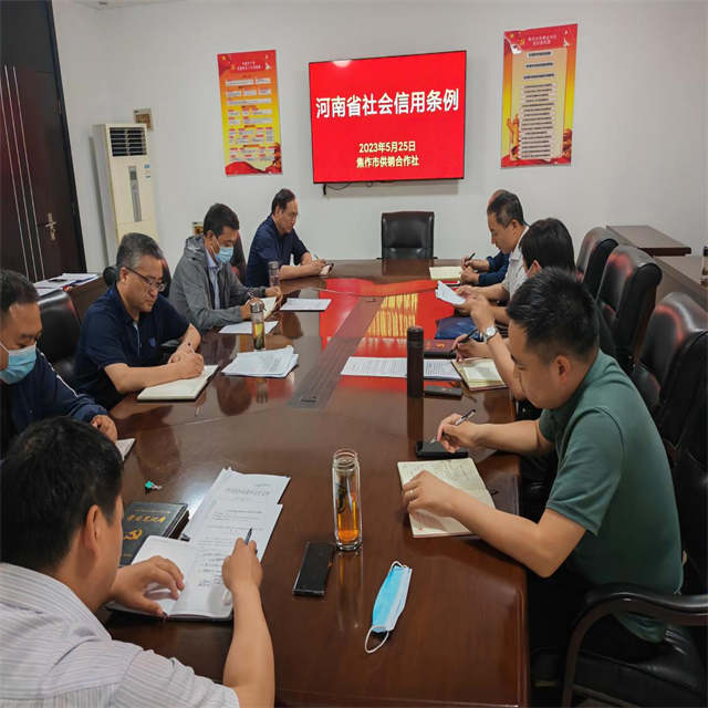 为深入学习贯彻《河南省社会信用条例》,全面推进机关社会信用体系建设,营造良好社会氛围,5月25日,焦作市供销合作社组织机关全体全体党员干部学习《河南省社会信用条例》。
