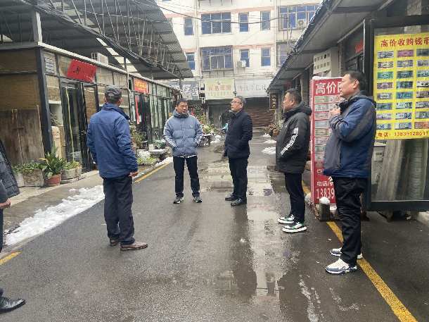 在古玩城市场,胡宜朝察看了市场大棚的积雪覆盖情况, 要求及时关注市场设施安全情况,提前做好应对雨雪冰冻天气的安全防范措施,坚决消除雨雪冰冻期间的安全隐患。