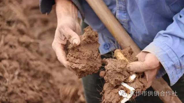 正宗的垆土山药,土质真的很硬实,黏性很大。