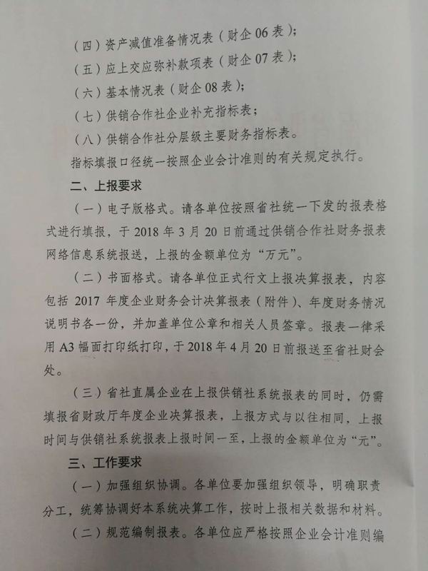 请各单位参照《河南省供销合作总社办公室关于做好2017年度企业财务会计决算工作的通知》要求,做好有关2017年财务决算报表汇总上报工作。