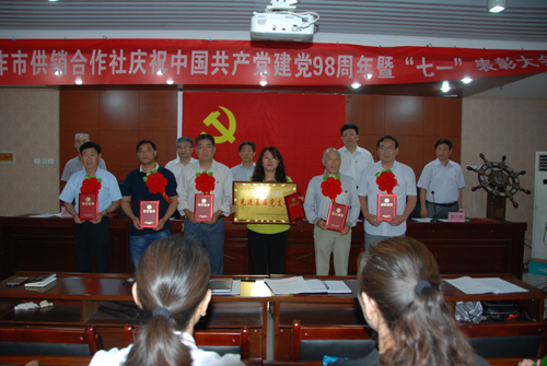 在中国共产党建党98周年即将来临之际,6月28日上午,焦作市供销社隆重召开庆祝建党98周年暨“七一”表彰大会。总结去年以来市社系统的党建工作,安排部署新形势下的党建工作,表彰先进基层党组织、优秀党务工作者和优秀党员,同时表彰“学习强国”学习标兵。