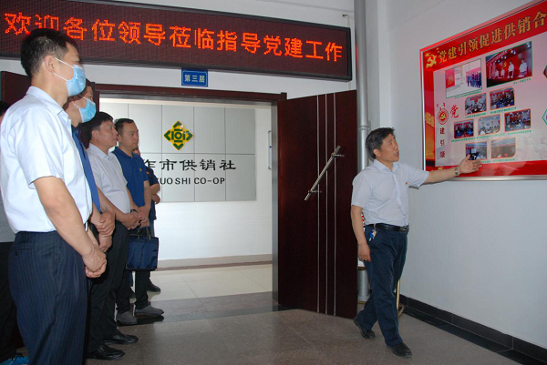 5月26日,按照市委市直机关工委统一安排,由市直机关工委副书记宜向东带队,市直机关党建第三片区11家单位观摩我社党建工作,市供销社党组书记、机关党委书记、理事会主任毕明奇陪同观摩,并亲自讲解了供销社党建工作。