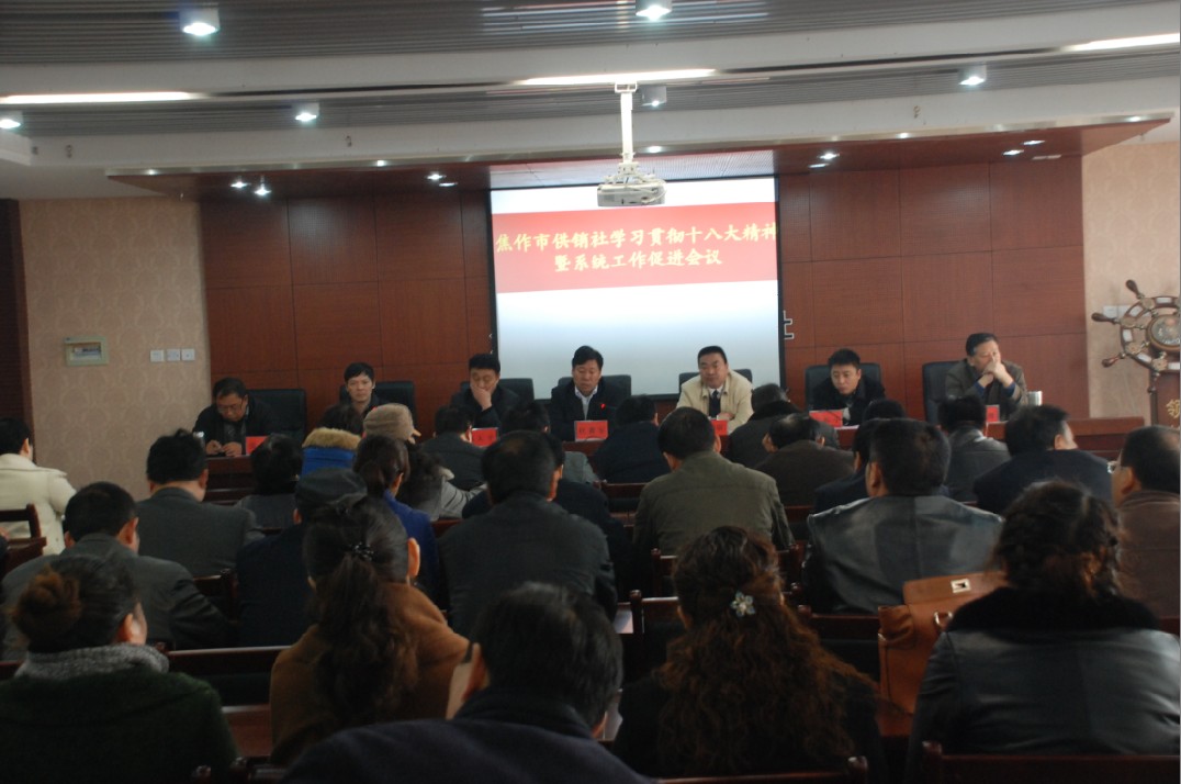 11月22日上午,全市供销社学习贯彻十八大精神暨系统工作促进会议在焦作市供销社会议室召开。市社主任杜拥军,省供销合作社安全统筹处处长董传康,市社调研员白天平,市社副主任宋振宇,市社纪委书记张保营,各县(区)供销社主要领导及分管领导共60多人参加会议。会议由市社副主任皇甫杰真主持。