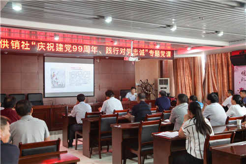 6月30日,在全党上下庆祝中国共产党成立99周年之际,市供销社党组书记、理事会主任毕明奇为机关党员干部和直属单位党政负责人讲授了题为《弘扬传统文化 做对党忠诚的合格党员》的专题党课。在讲授中,毕明奇围绕“从历史角度看对党忠诚”“习总书记话忠诚”“共产党人如何做到对党忠诚”三个方面内容,同与会党员干部进行了交流分享。
