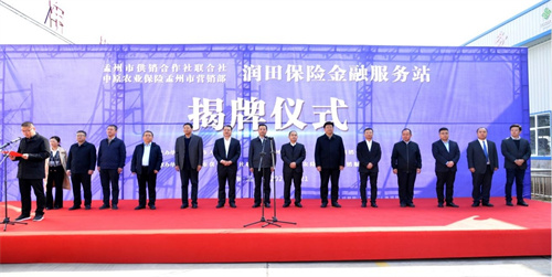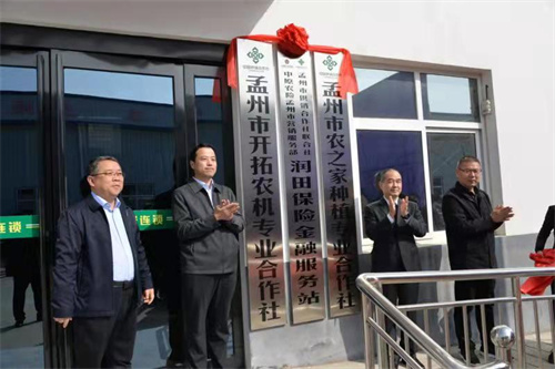 10月21日上午,孟州市供销合作社联合社 中原农业保险孟州市营销部润田保险金融服务站在孟州市润田为农服务中心举行揭牌仪式。河南省供销合作总社党组成员、理事会副主任张留根,中原农业保险股份有限公司副总经理雷廷军,孟州市委副书记杨建路、副市长曹文杰出席揭牌仪式并讲话;焦作市供销合作社党组书记、理事会主任双占侠、理事会副主任张中秋出席揭牌仪式并颁发首张保单;中原农业保险孟州市营销服务部许涛与孟州市润田农资连锁有限公司董事长谢春治分别代表双方签订合作协议。
